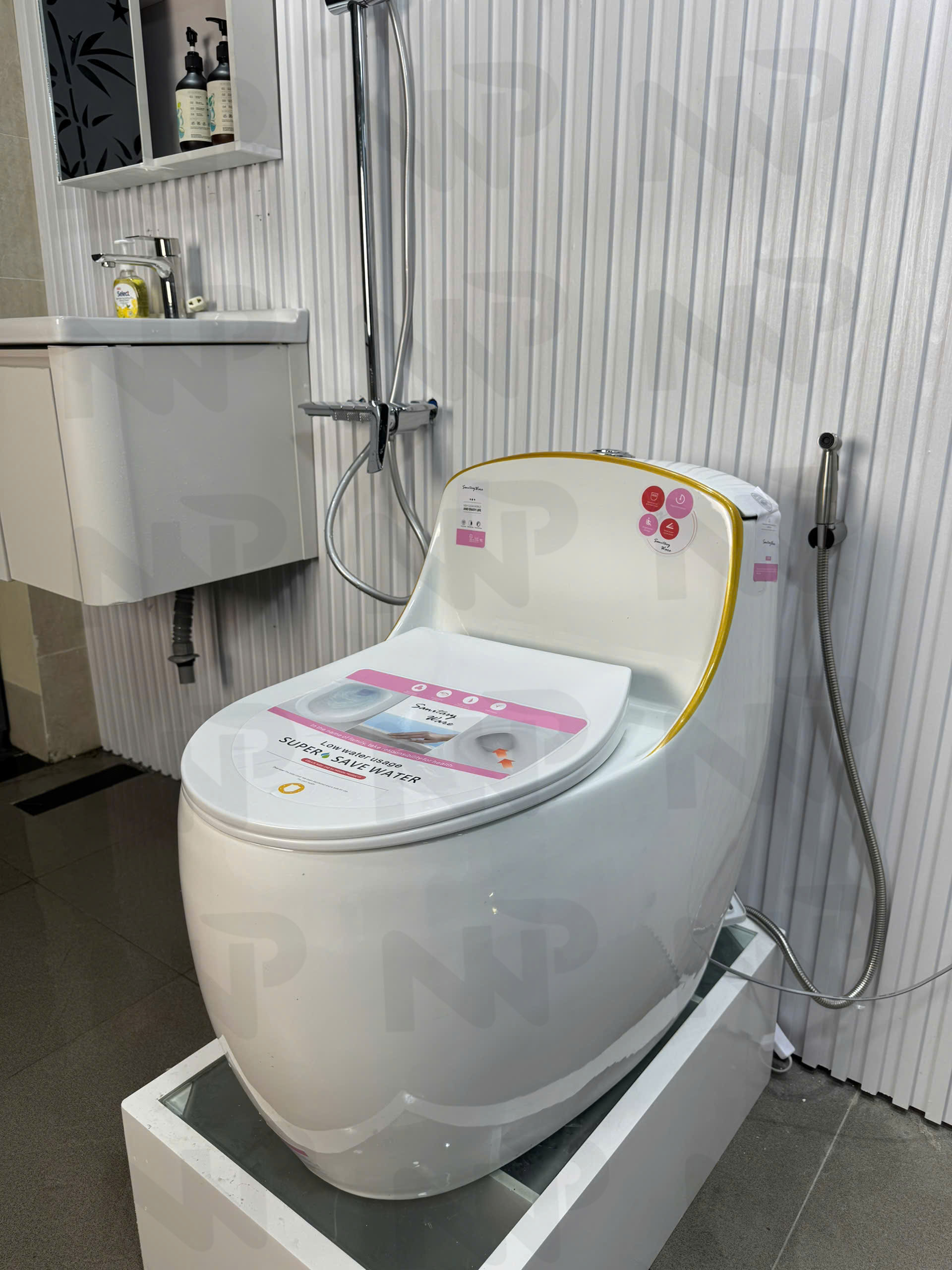 Hãy là người đầu tiên nhận xét “Bồn cầu trứng trắng viền vàng 5015” Hủy