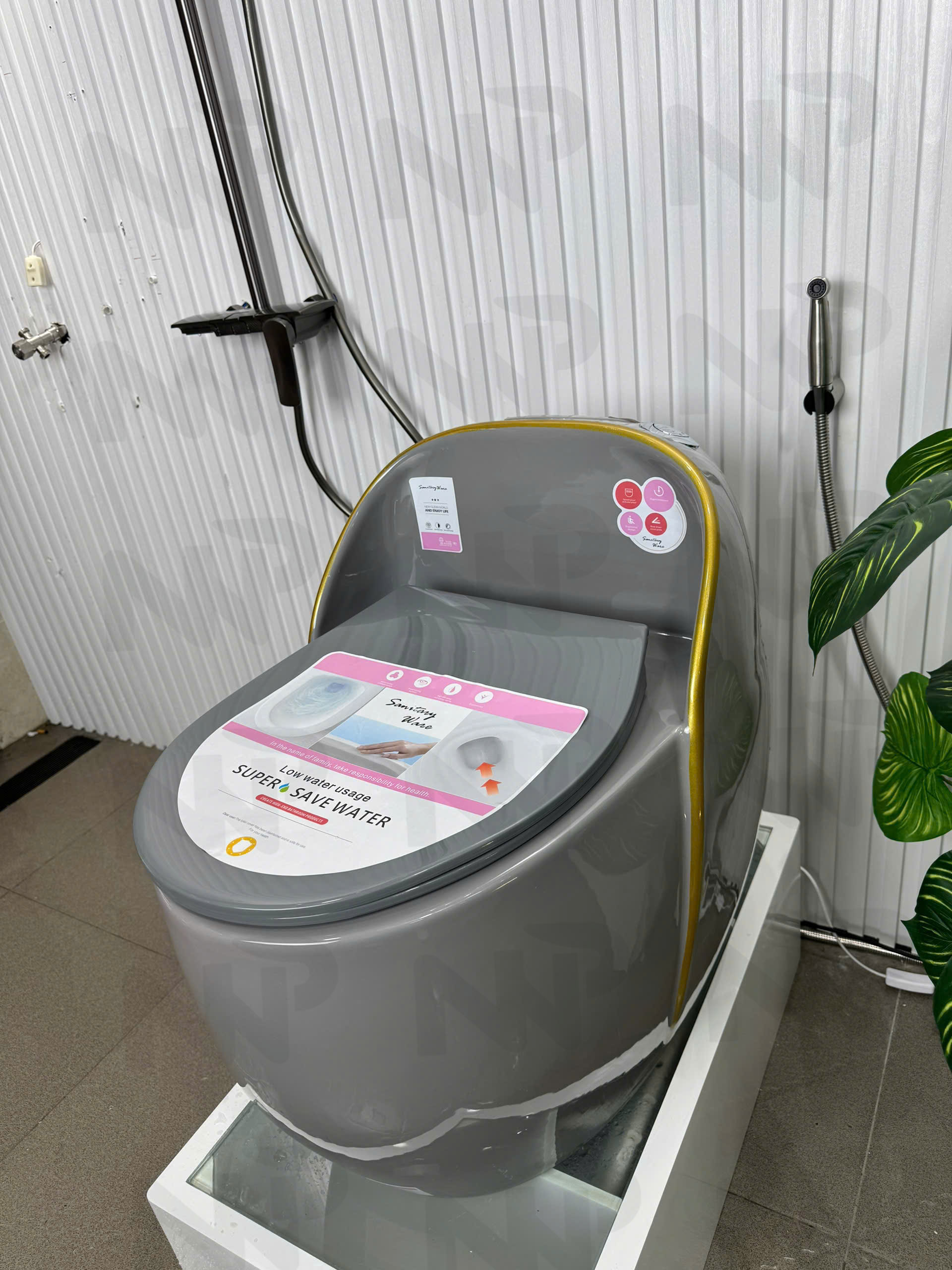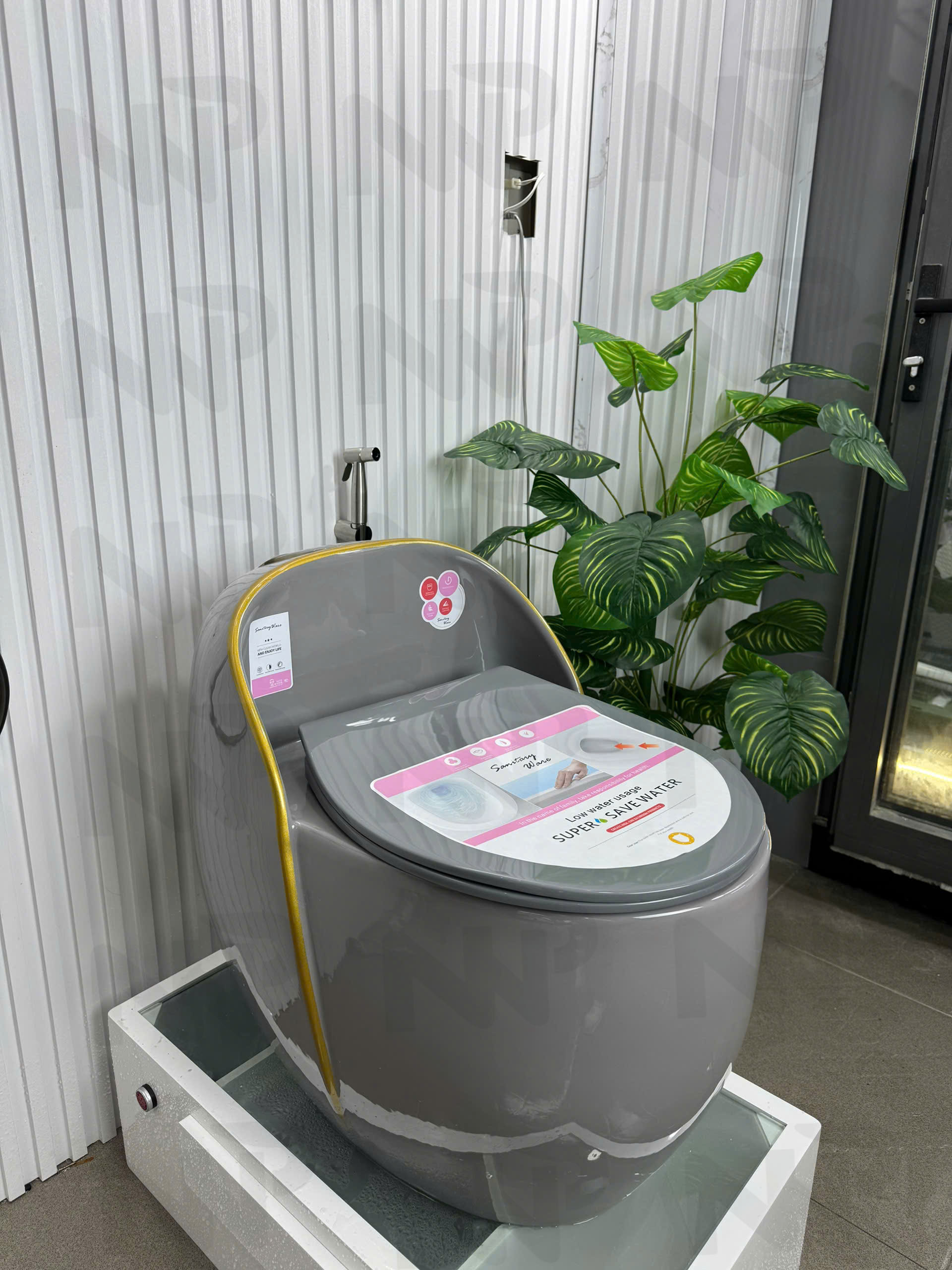 Bồn cầu trứng xám viền vàng 5027
